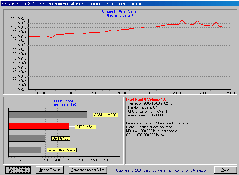 rpm, Seek time8.5 ms avg, SATA 1.5Gb/s というスペックのものを、2本使用した。これをSilicon ImageのRAID