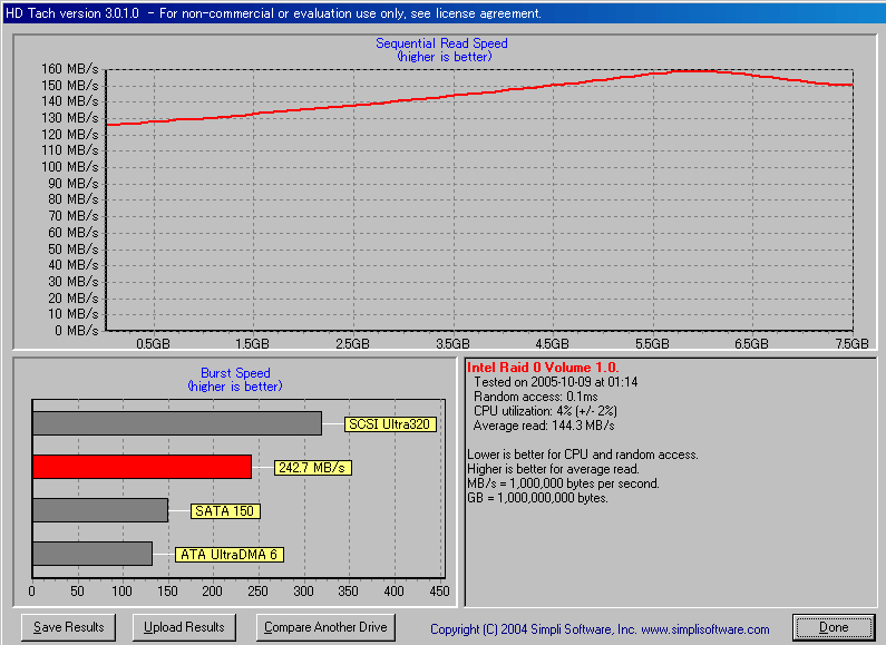 0 に設定。システムは同じWindowsXP x64 professional Edition。容量は320GBになる。他の機器は同じ条件で、i-RAMとハードディスクのStripingSATA端子を挿し替えて比較した。