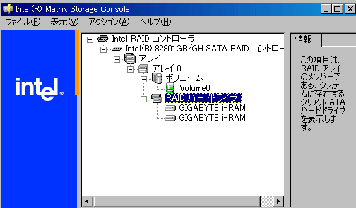 i-RAMでRAIDを構築するには、現段階ではチップセットに制約がある。PC2で使用しているnForce4 SLIはRAIDをサポートしていない。IntelのICH7RやSISのチップセットはサポートしているようだ。OSに関しては特に記載はない。ここではnForce4
