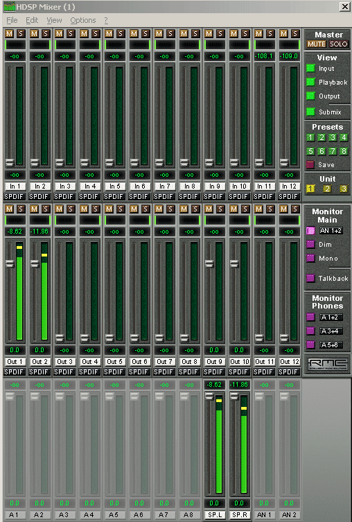 サウンドカードRME HDSP9632のMixer。AES/EBU出力。