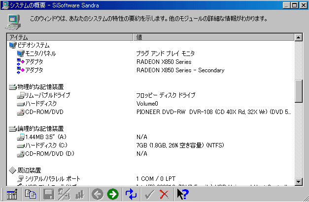 今回は、周辺機器を一新しているが、ビデオカードも変更した。X1800XTでAVIVOの機能を使用した。PC全体のパフォーマンスが上がっているので、ビデオカードがどれだけ影響しているかは不明だが、質の高い動画だった。特に動画の滑らかさと階調表現が秀逸だった。市販専用機を見ているような画像の安定感があるのも特徴の一つ。