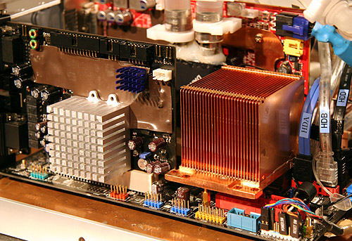 以前から使用していた、Danger Denの水枕がピッタリ合う。X600, X700, X850といずれにもフィットする。ボードの穴の位置は同じだった。ここまで一時間程度で完了。思ったより簡単だった。起動してみたが、問題なく動作する。気になる自作の冷却プレートは、3DMARK05を5回連続負荷で19度から28度まで上昇する(ケース内13度)。DVD画質の変化は明らかではない。音質は若干変化した。ファンは電気的なノイズ源になっているのかもしれない。