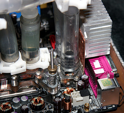 こういう設定でも、動作上の支障はない。チラー抜きの、単なる水冷システムとしても問題ない性能を示す。