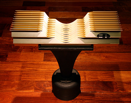 2000ワット、ダンピングファクター5000の音は表現が難しい。かつて経験したことのない低域の振る舞い。部屋の隅々まで、あるいは体の中まで浸透する、芯があり切れのよい低域だ。それはあいまいさとは無縁で、始まりと終わりが明瞭。躯幹から頭部まで断続的に貫く。更に、中高域の音色まで変えるように感じる。マルチドライブの美点が前面に出た格好だ。