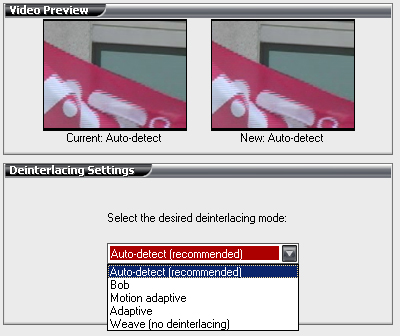 - Video de-interlacing options. This option allows video enthusiasts to choose which de-interlacing method they want to use