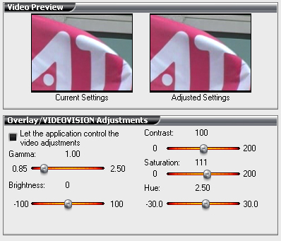 とりあえず、WinDVD6で試してみた。Deinterlacing settingはAuto-detect,overlayの画質調整はドライバーで行い、上のようにHiViCASTで調整した。